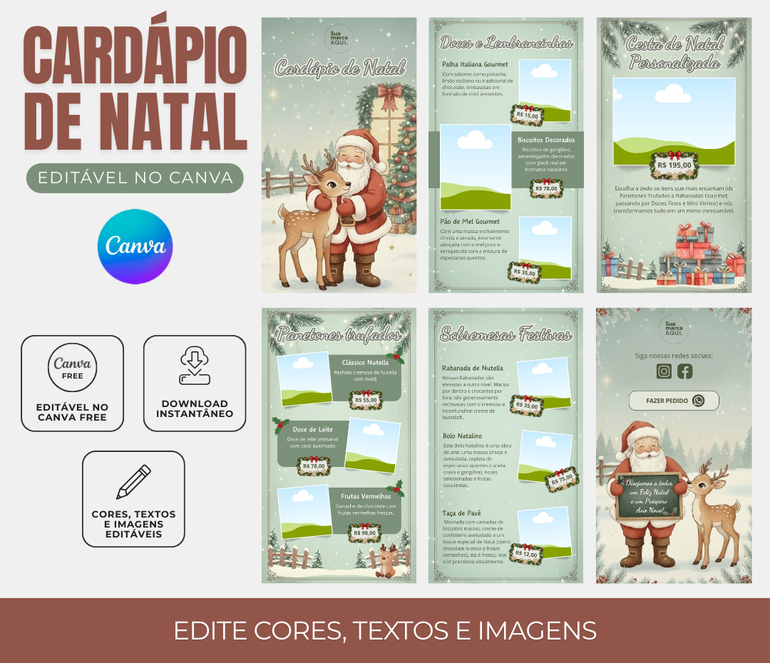 1 Cardápio / Catálogo de Natal com 6 Páginas para editar no Canva
